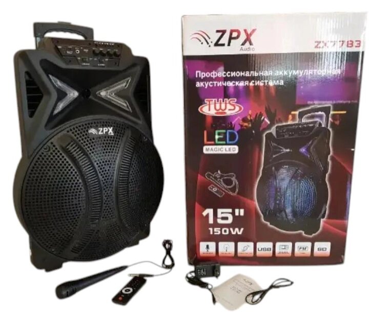 Портавтивная Bluetooth колонка ZPX ZX-7783 BT 150Вт микрофон пульт ДУ черный