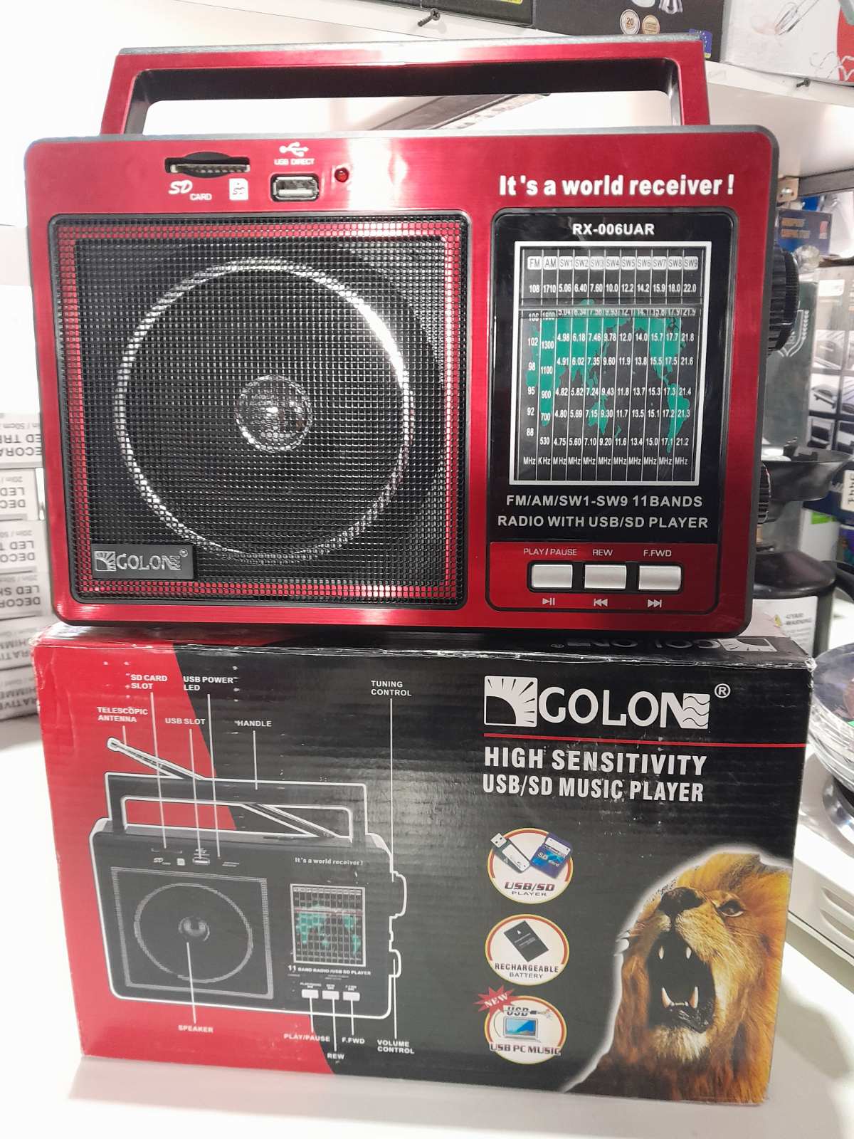 Радиоприемник RX-99UAR (аккумуляторный, от сети 220В и батареек, разъем для наушников)