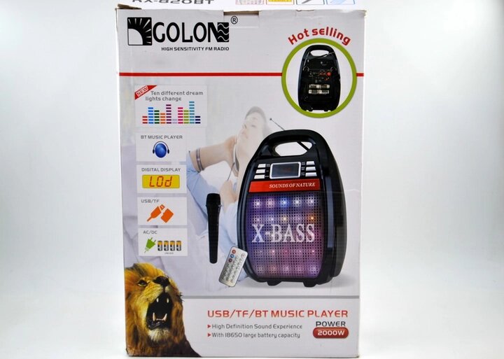 Акустика Golone RX 820 работает от сети 220в на аккумуляторе и есть возможность поставить батарейки !!!
