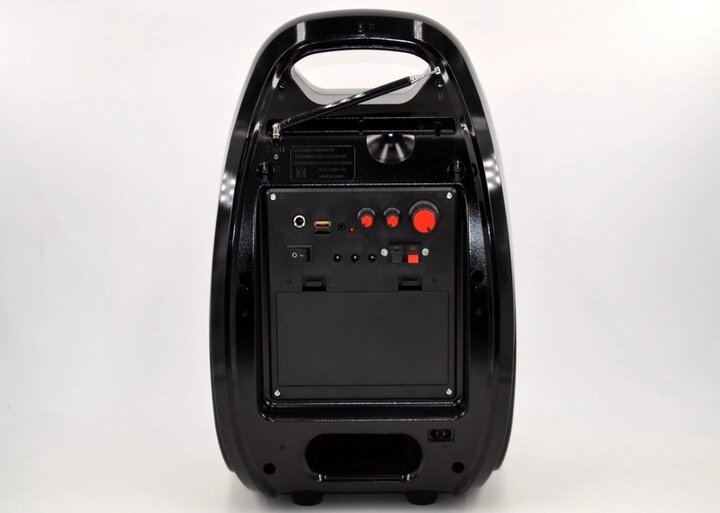 Небольшая, но очень удобная акустическая система на аккумуляторе и с микрофоном на плече!!! Очень удобна в переноске! Есть ФМ-радио ! Функция Bluetooth !!!