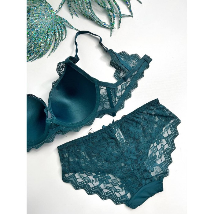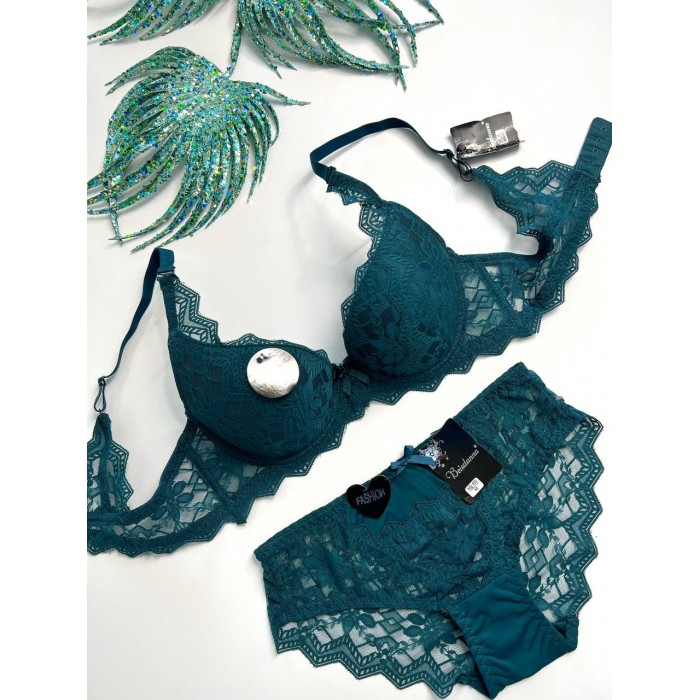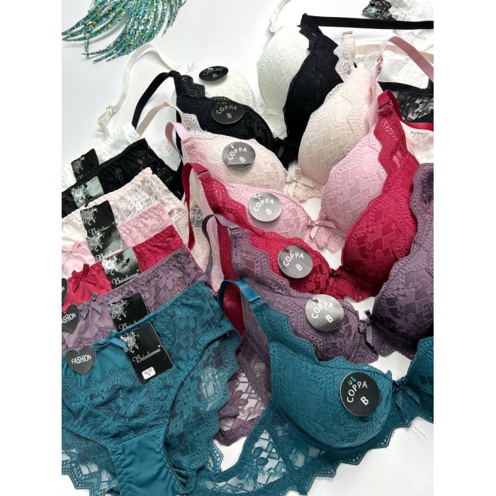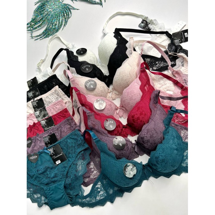 | ОПИСАНИЕ | Кружевной бюст на поролоне. Бретель - съемная, спина - ажурная. Трусики на средней посадке. |