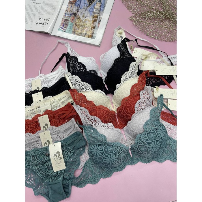 | ОПИСАНИЕ | Ажурный бюст на поролоне. Бретель - съемная, спина - ажурная. Трусы на средней посадке. |