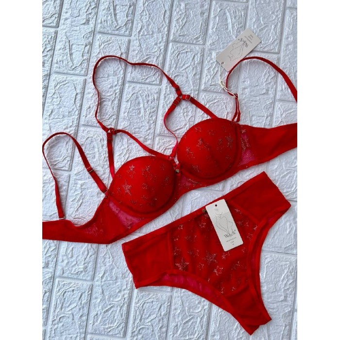 ОПИСАНИЕ Бюст на кости на пущ-апе. Бретель - съемная, спина - гладкая. Трусики на средней посадке. М-L-XL