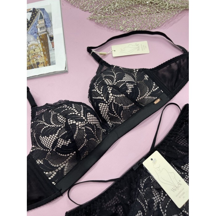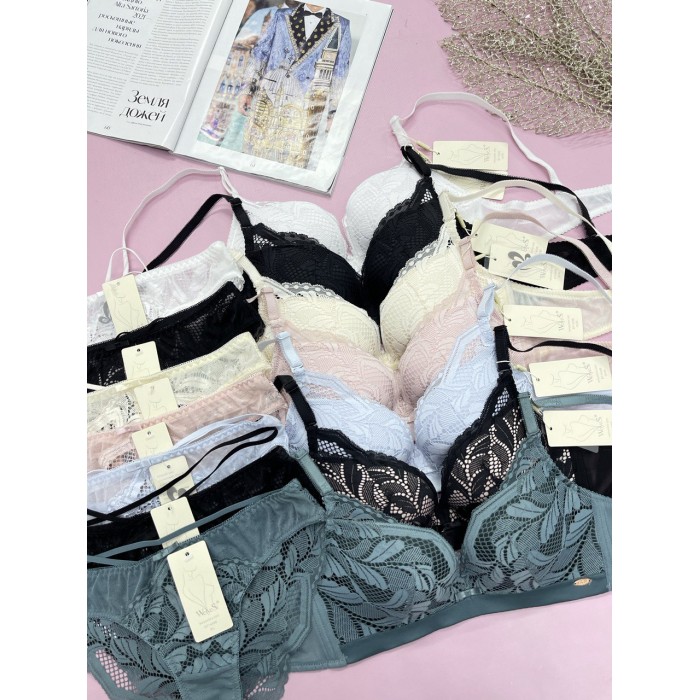 | ОПИСАНИЕ | Кружевной бюст на толстом поролоне без косточек. Бретель - съемная, спина - гипюровая. Трусики на средней посадке. |
