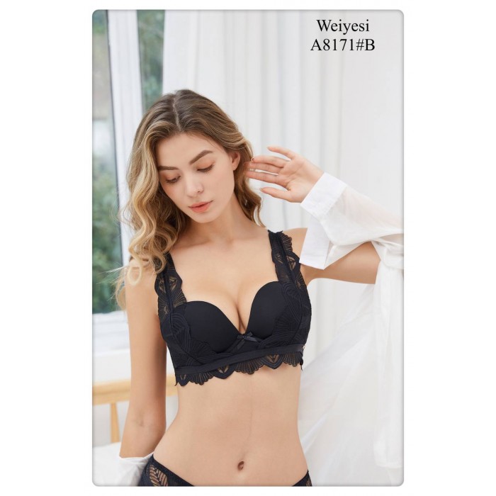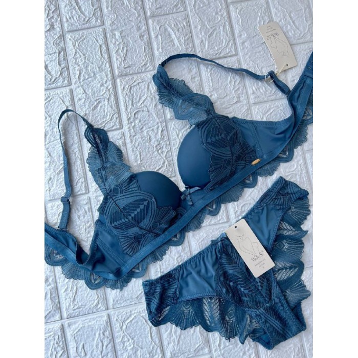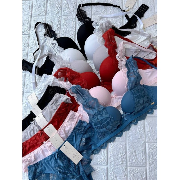 ОПИСАНИЕ Гладкий бюст с кружевными вставками на пуш-апе. Бретель - несъемная, спина - ажурная. Трусики на средней посадке. М-L-XL