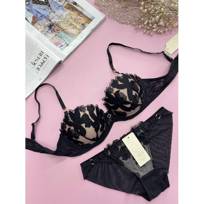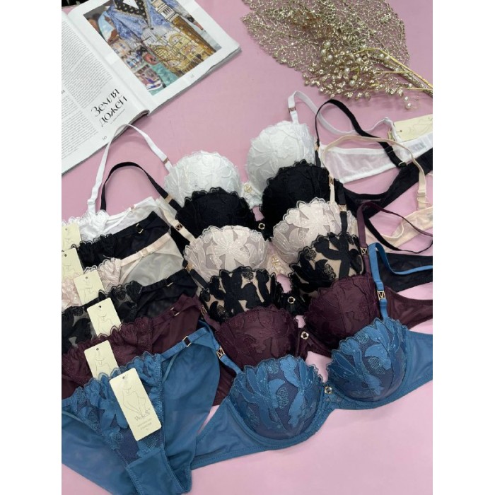 | ОПИСАНИЕ | Ажурный бюст на толстом поролоне . Бретель - съемная, спина сетка. Трусы на средней посадке. |