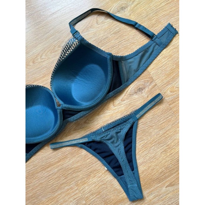 ОПИСАНИЕ Ажурный бюст на корректоре. Бретель - съемная, спина - гладкая. Бикини на средней посадке (m-l-xl-2xl − 42-44-46-48).