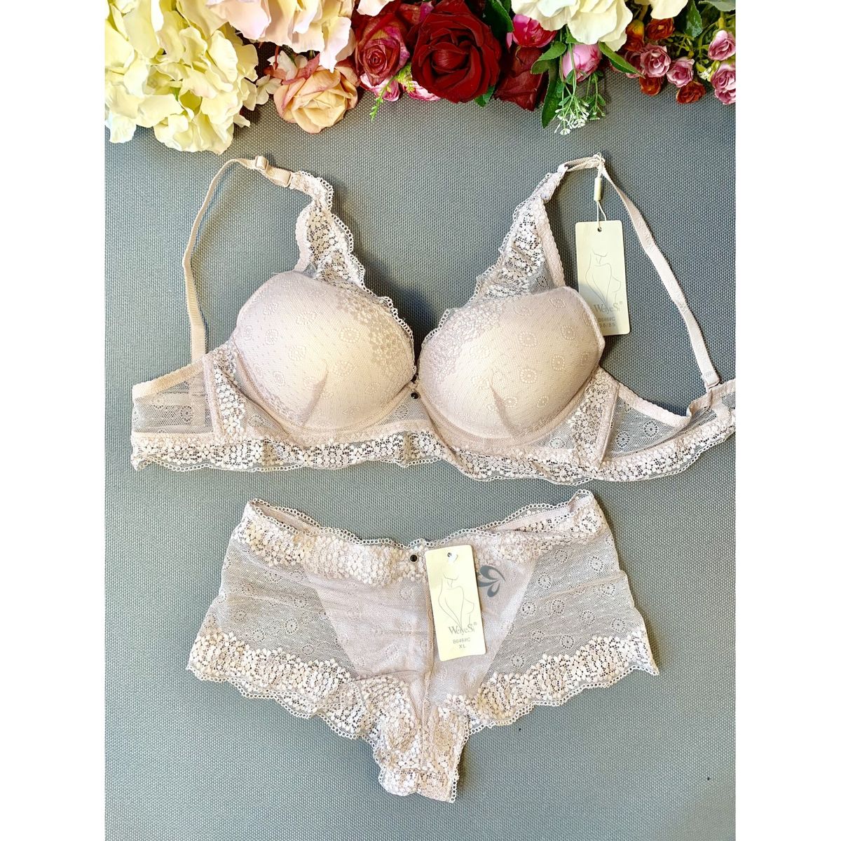 Описание: Ажурный бюст на тонком поролоне. Бретель – съемная, спина - ажурная. В комплекте трусики со низкой посадкой.