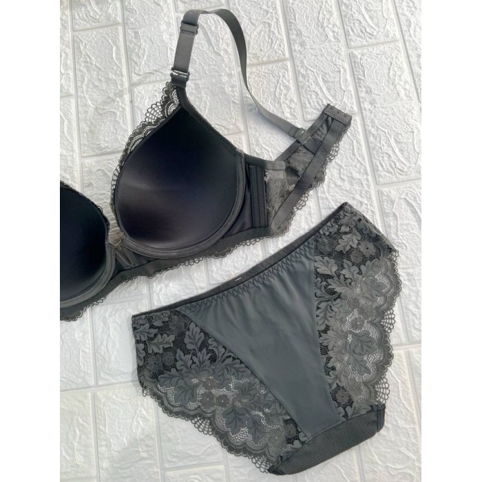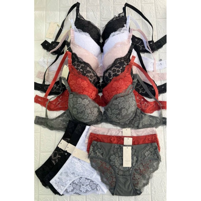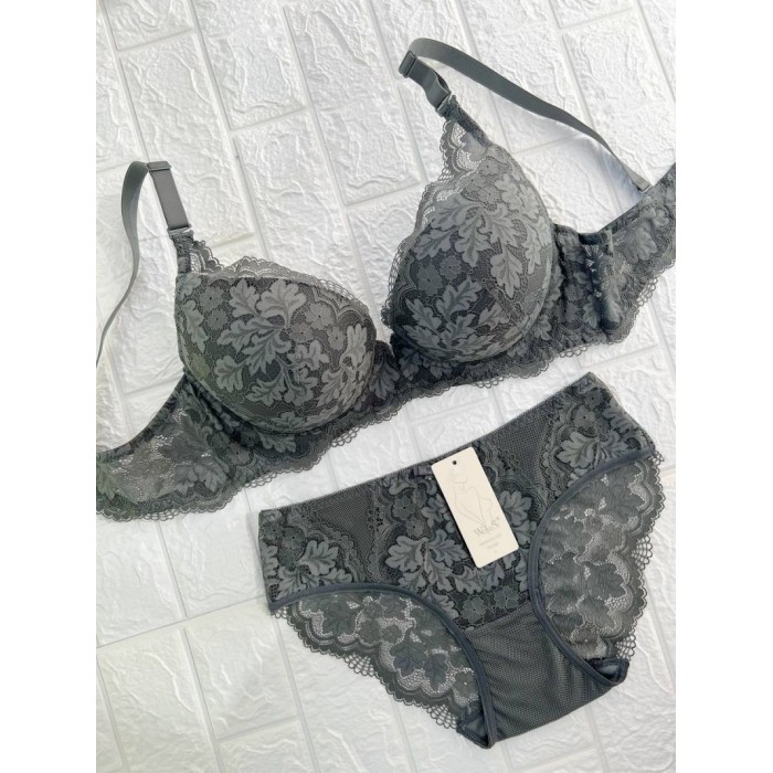ОПИСАНИЕ Ажурный бюст на поролоне. Бретель - съемная, спина - кружевная. Трусы на средней посадке.