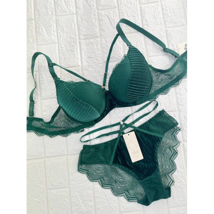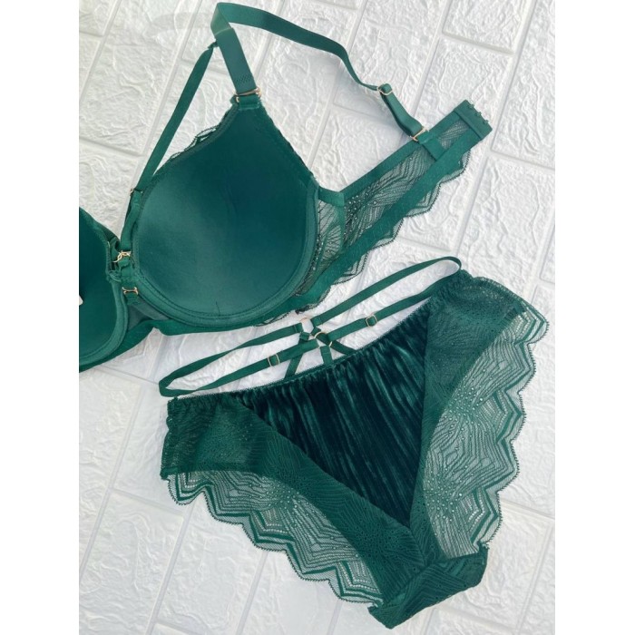 ОПИСАНИЕ Рельефный бюст с вельветовыми вставками на поролоне. Бретель - съемная, спина - ажурная. Трусики на средней посадке.