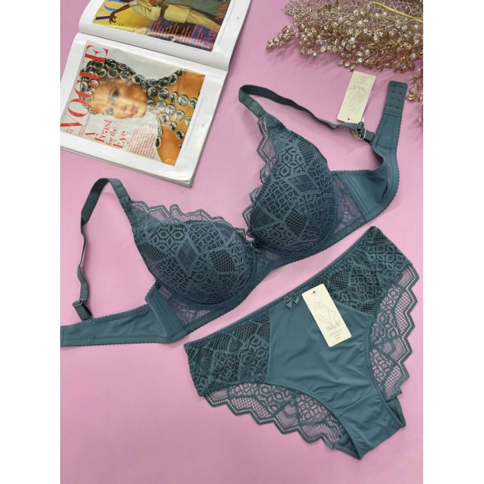 | ОПИСАНИЕ | Ажурный бюст на тонком поролоне. Бретель - несъемная, спина - гладкая. Трусы на средней посадке. |
