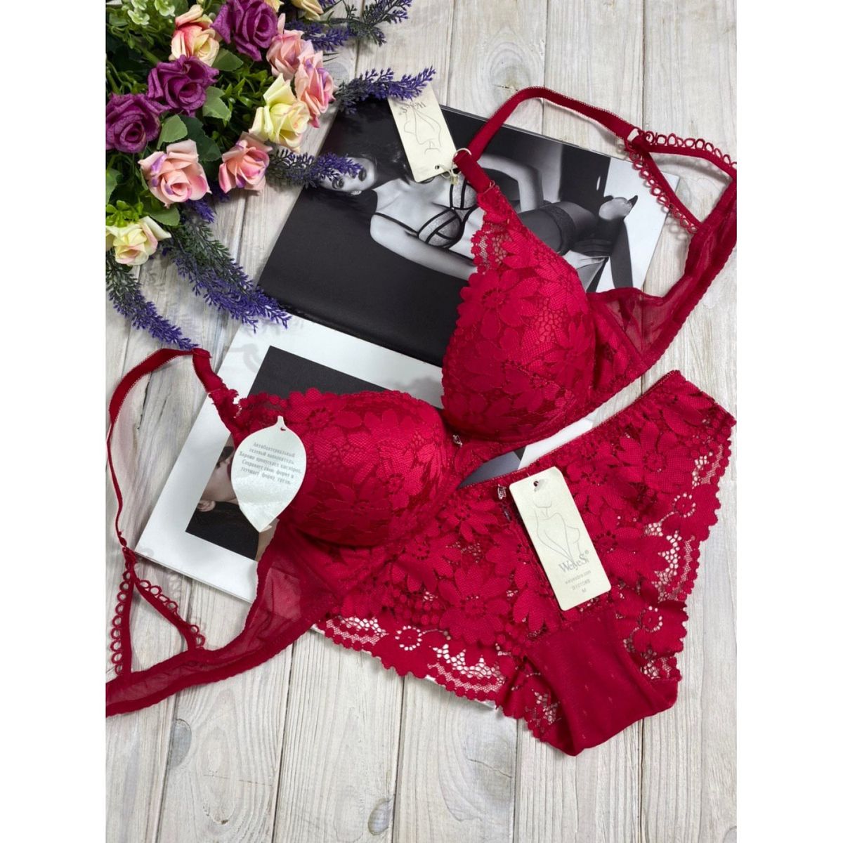Описание: Ажурный бюст на гелевом пушапе(массажные шарики). Бретель – съемная, спина - гладкая. В комплекте трусики с низкой посадкой.