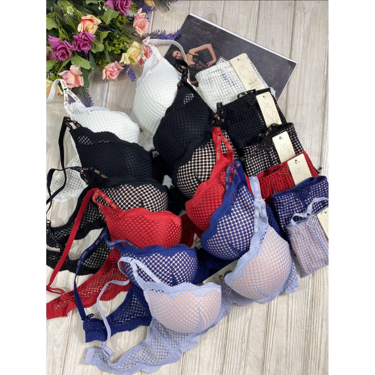 Ажурный бюст на корректоре(Адама Рука). Бретель – не съемная, спина - гипюровая. В комплекте трусики со низкой посадкой.