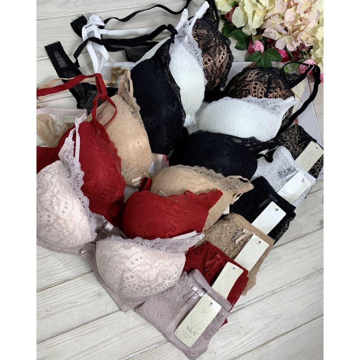 Описание: Ажурный бюст на корректоре. Бретель – съемная, спина - гладкая. В комплекте трусы с низкой посадкой.