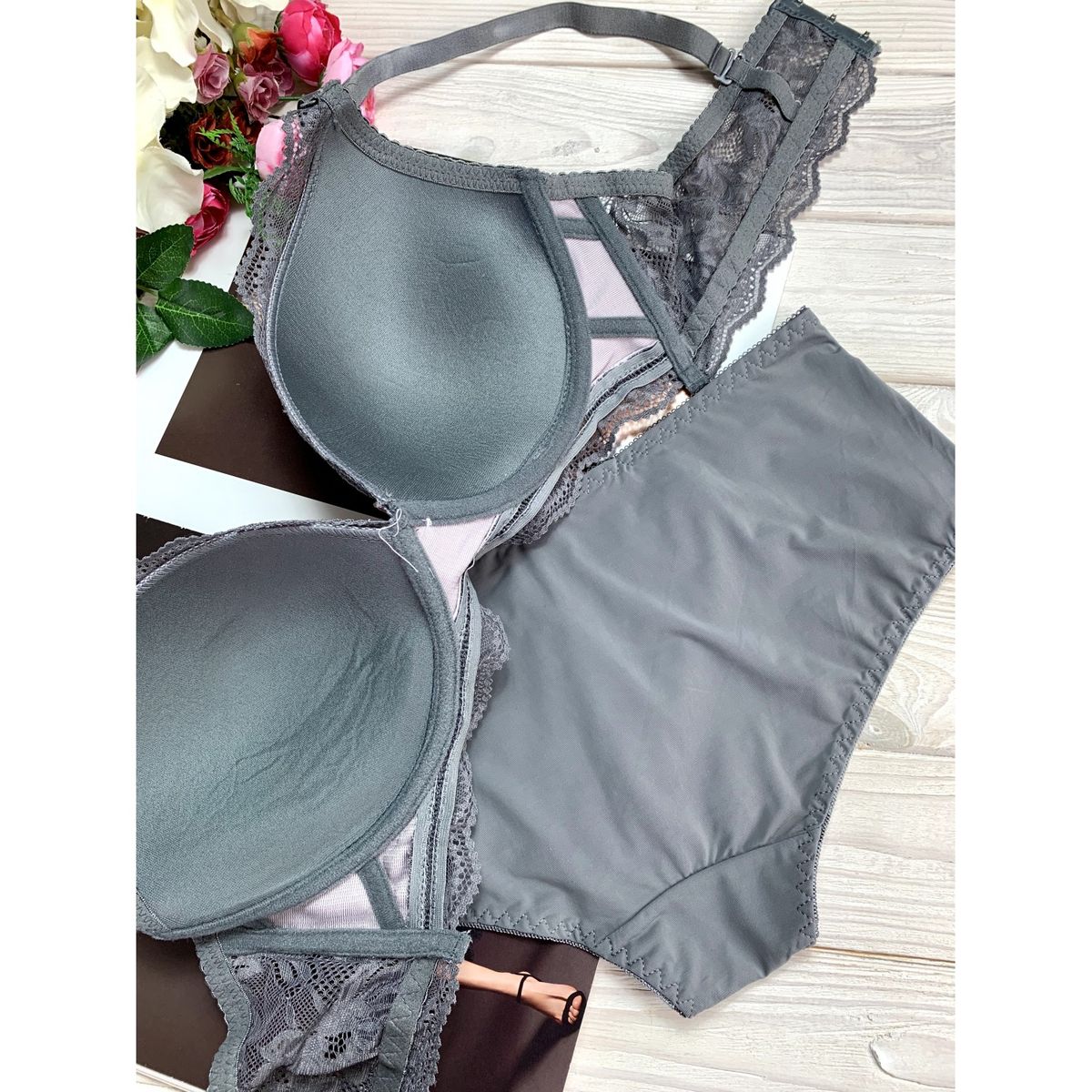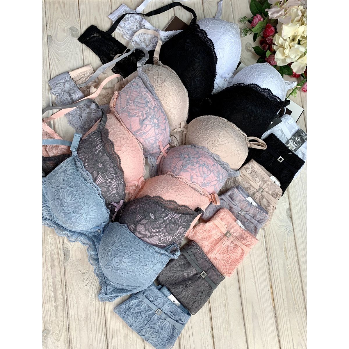 Описание: Ажурный бюст на небольшом поролоне без костей. Бретель – съемная, спина - гипюровая. В комплекте трусики с низкой посадкой.