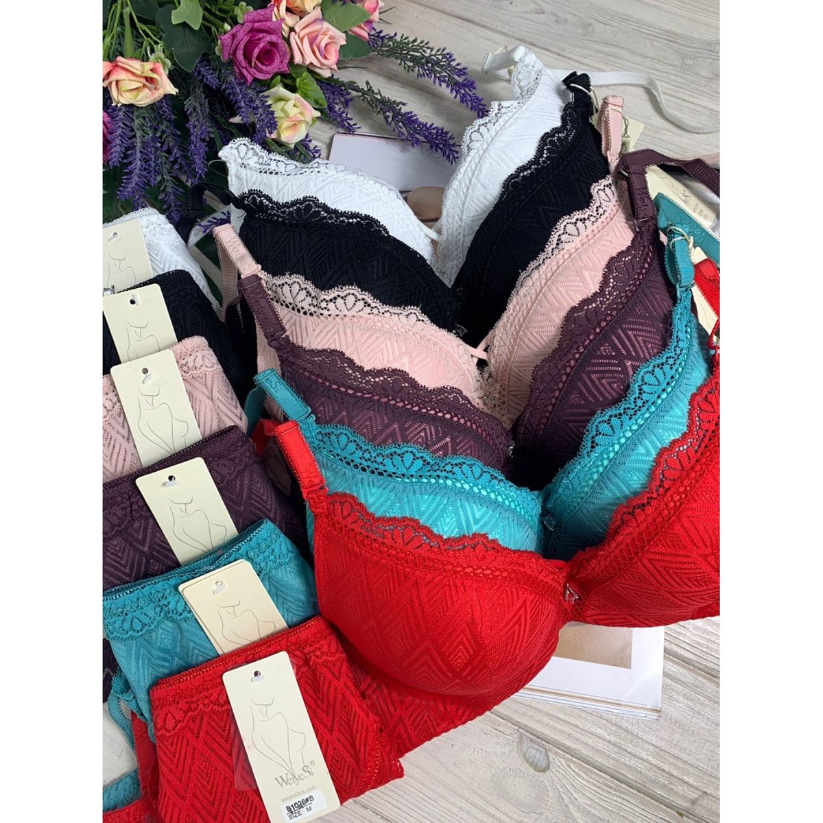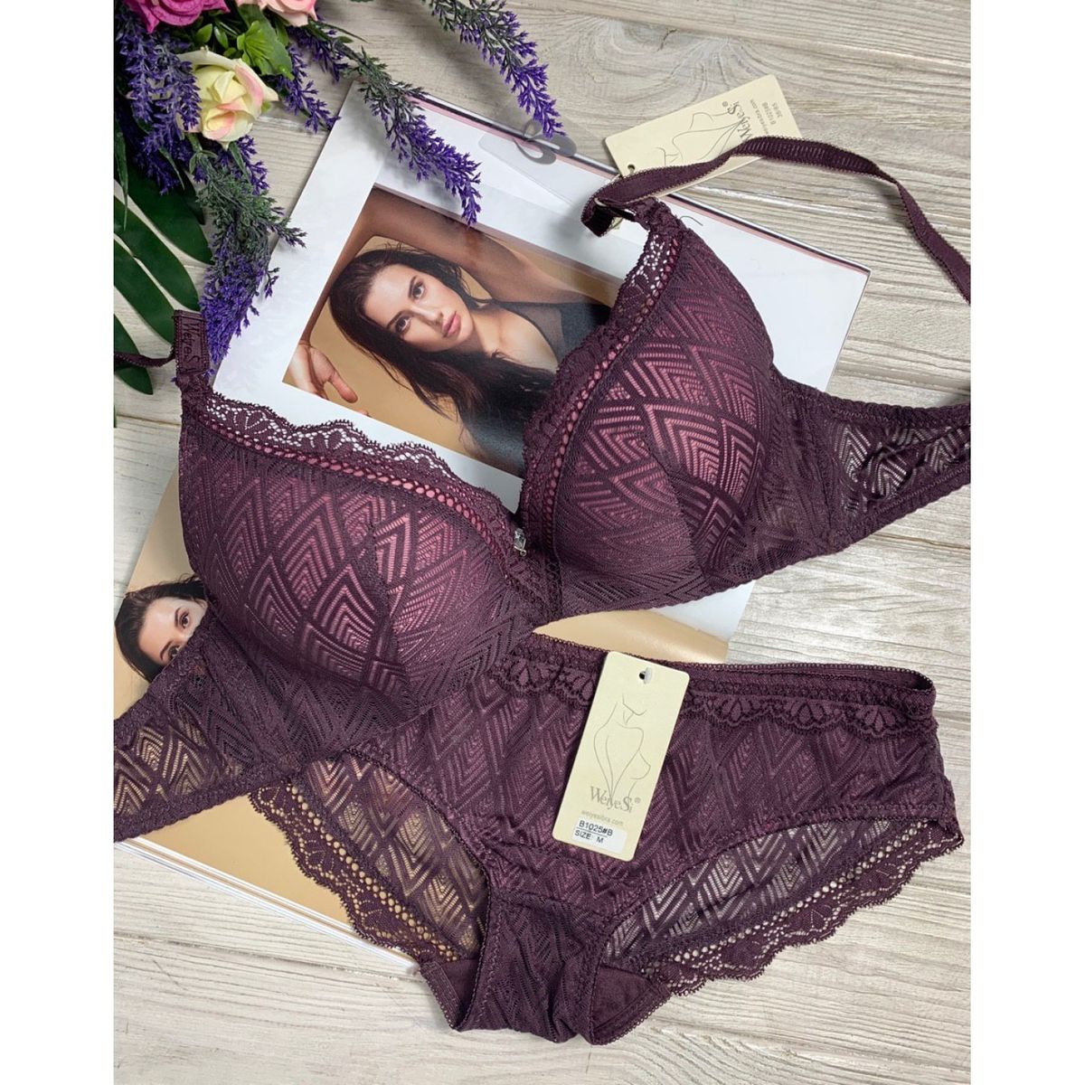 Описание: Ажурный бюст на поролоне. Бретель – съемная, спина - ажурная. В комплекте трусики со низкой посадкой.