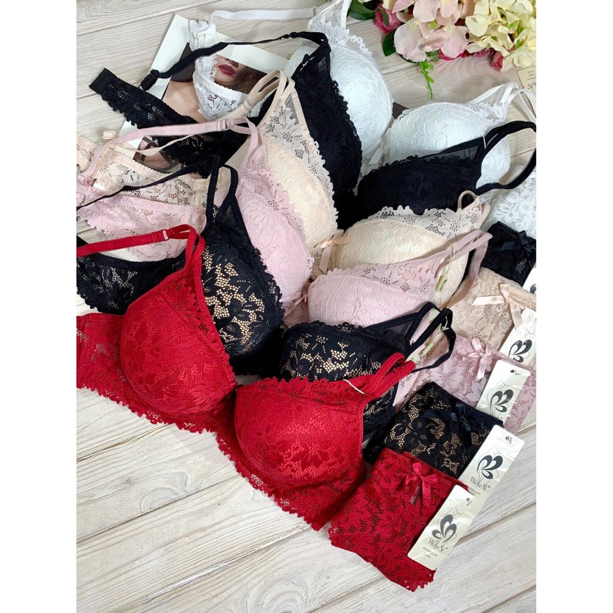 Описание: Ажурный бюст на поролоне. Бретель – несъемная, спина - ажурная. В комплекте трусики с низкой посадкой.