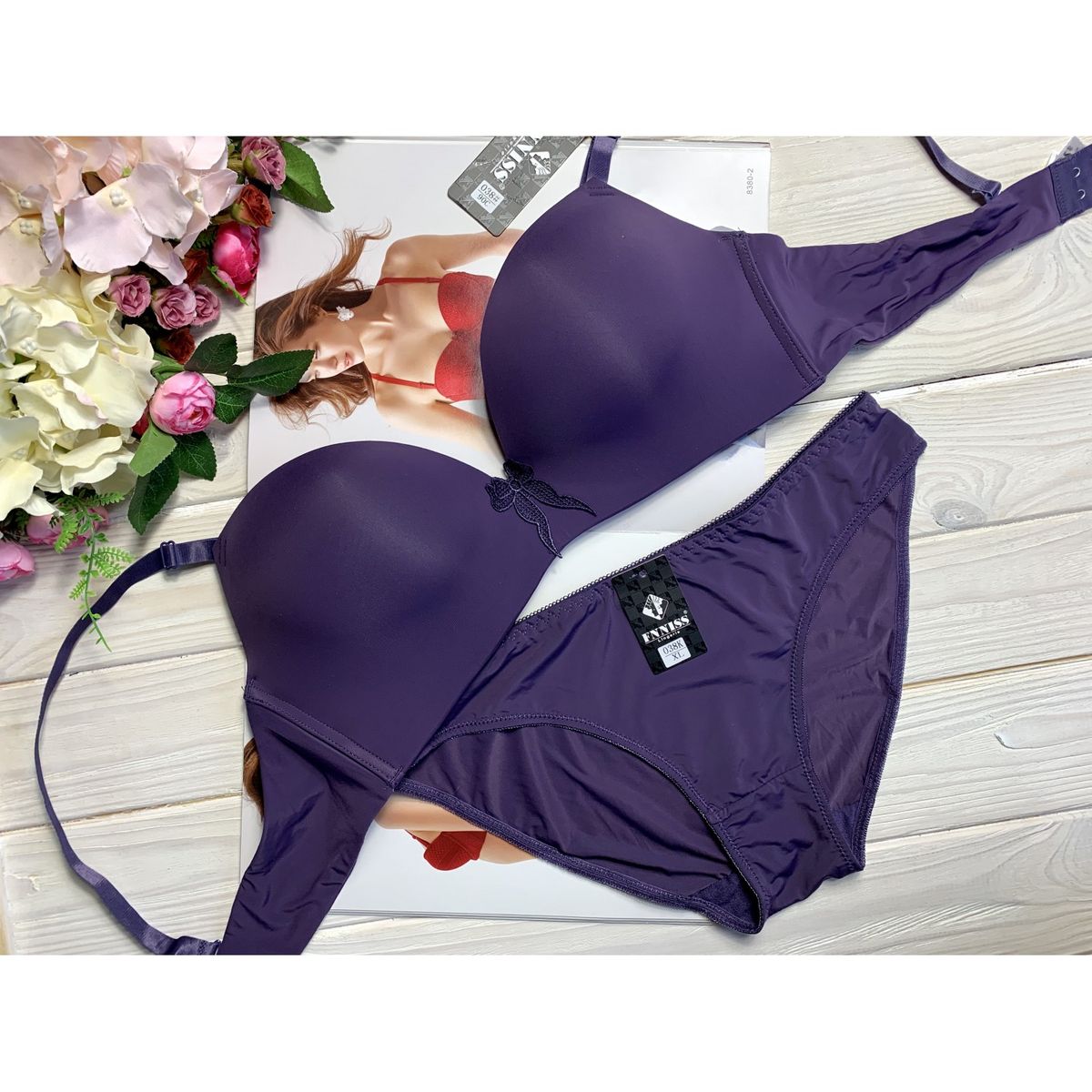 Описание: Гладкий литой бюст на небольшом корректоре без костей . Бретель – съемная, спина -гладкая. В комплекте трусики с низкой посадкой.