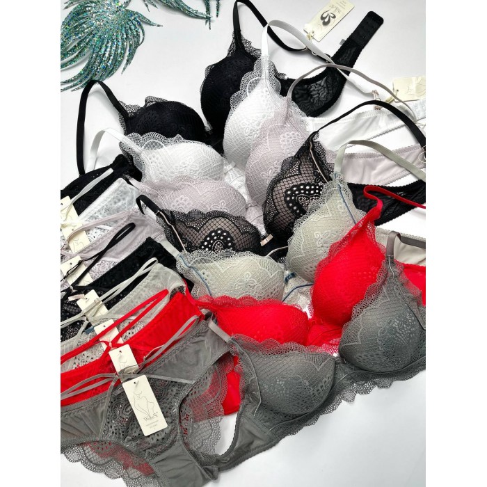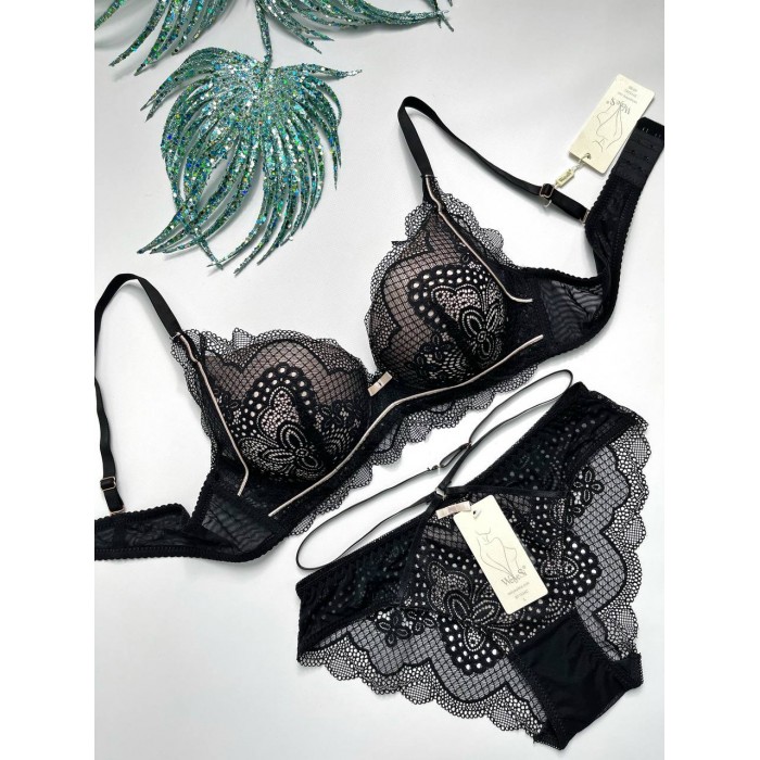 | ОПИСАНИЕ | Кружевной бюст на поролоне. Бретель - несъемная, спина - гипюровая. Трусики на средней посадке. |