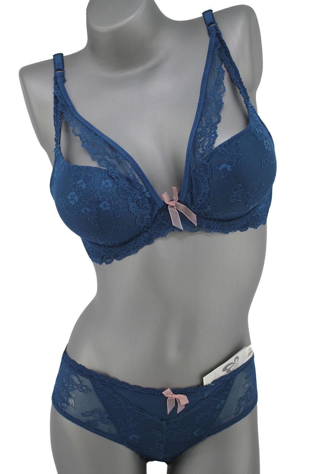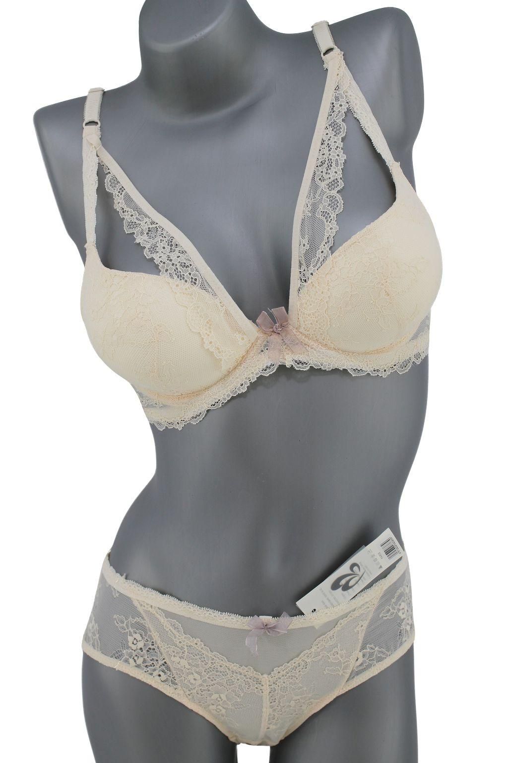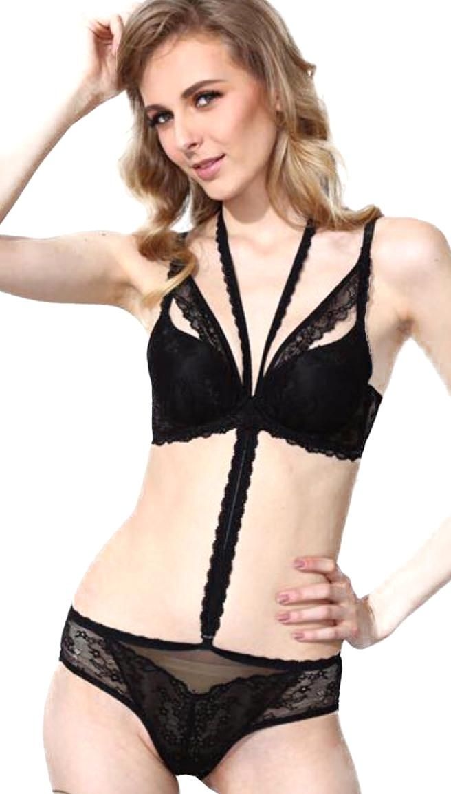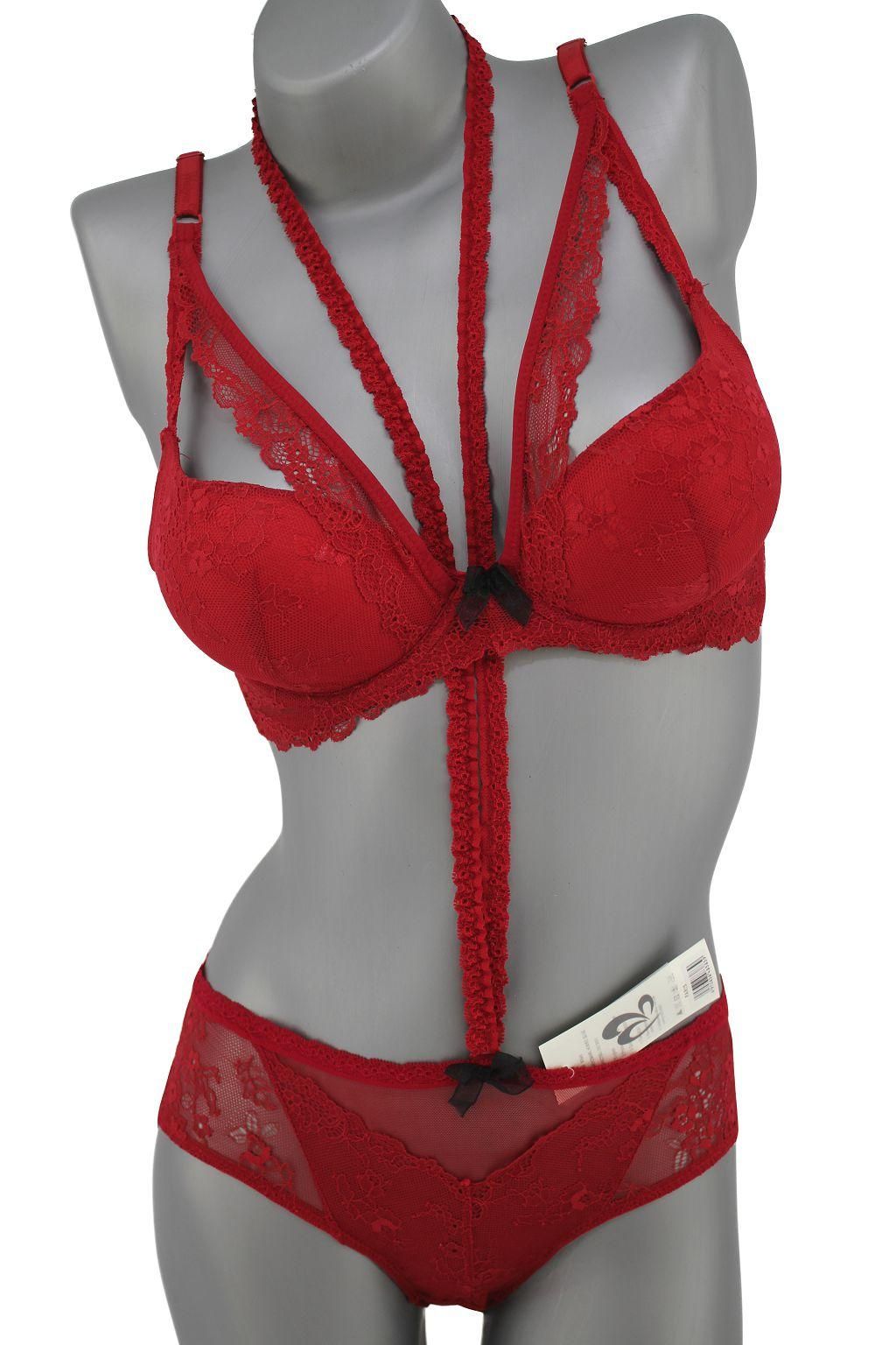 Описание: Ажурный бюст на тонком поролоне. Бретель – съемная, спина - гипюровая. В комплекте ажурные трусы с низкой посадкой. Дополнительная бритель которая идет через шею и по животу съемная.