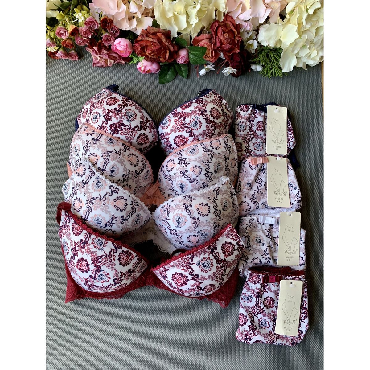 Описание: Гладкий бюст на тонком поролоне. Бретель – съемная, спина - ажурная. В комплекте трусики со низкой посадкой.
