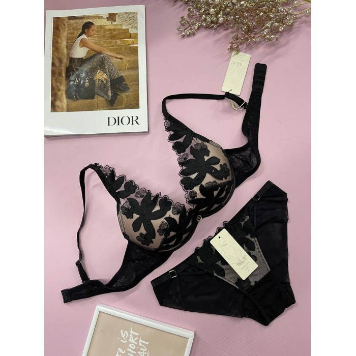 | ОПИСАНИЕ | Ажурный бюст на корректоре. Бретель - съемная, спина - гипюровая. Трусики на низкой посадке. |