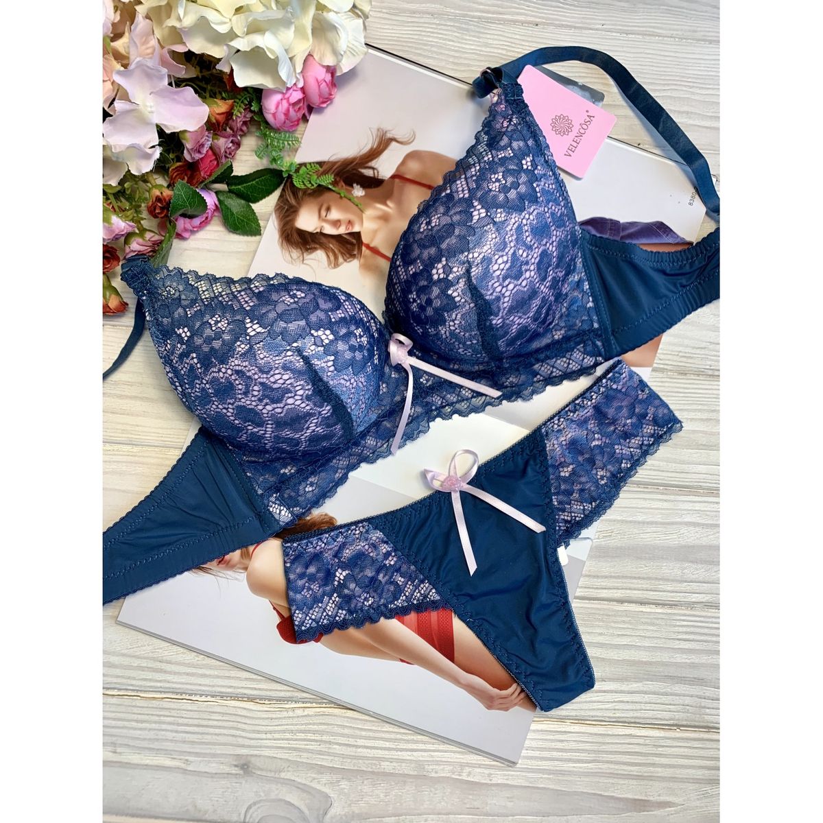 Описание: Ажурный бюст на тонком поролоне без костей. Бретель – съемная, спина - гладкая В комплекте стринги с низкой посадкой.