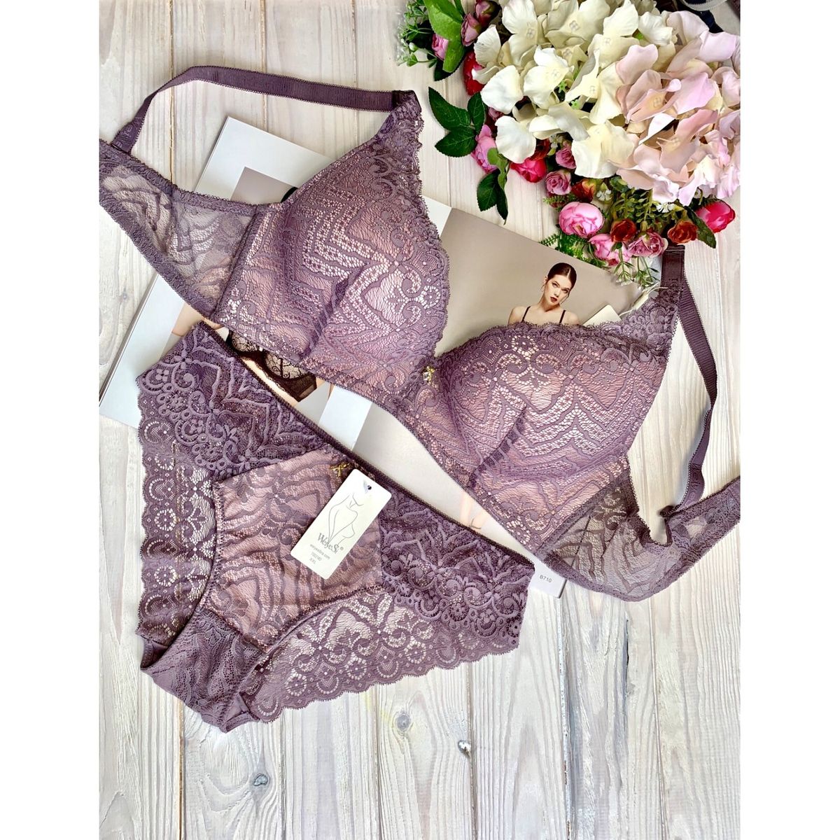 | Описание: | Ажурный литой бюст на тонком поролоне. Бретель – съемная, спина - ажурная. В комплекте трусики с низкой посадкой. |