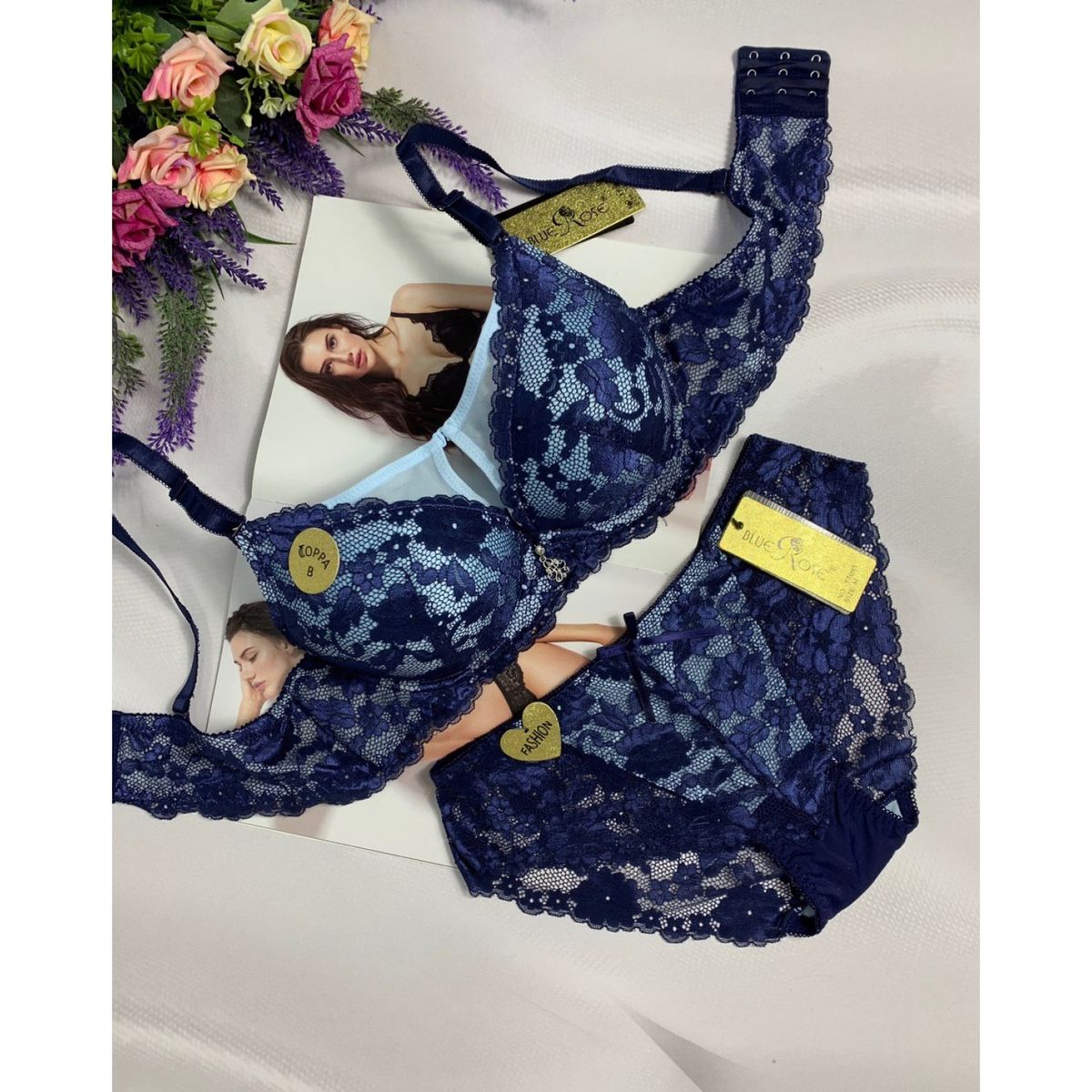 Описание: Ажурный бюст на поролоне. Бретель – съемная, спина - ажурная. Трусики на средней посадке.