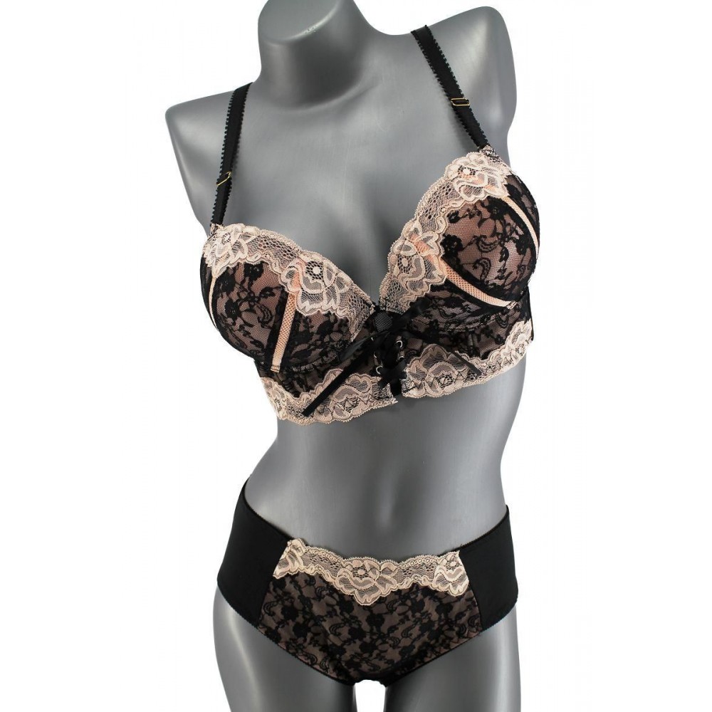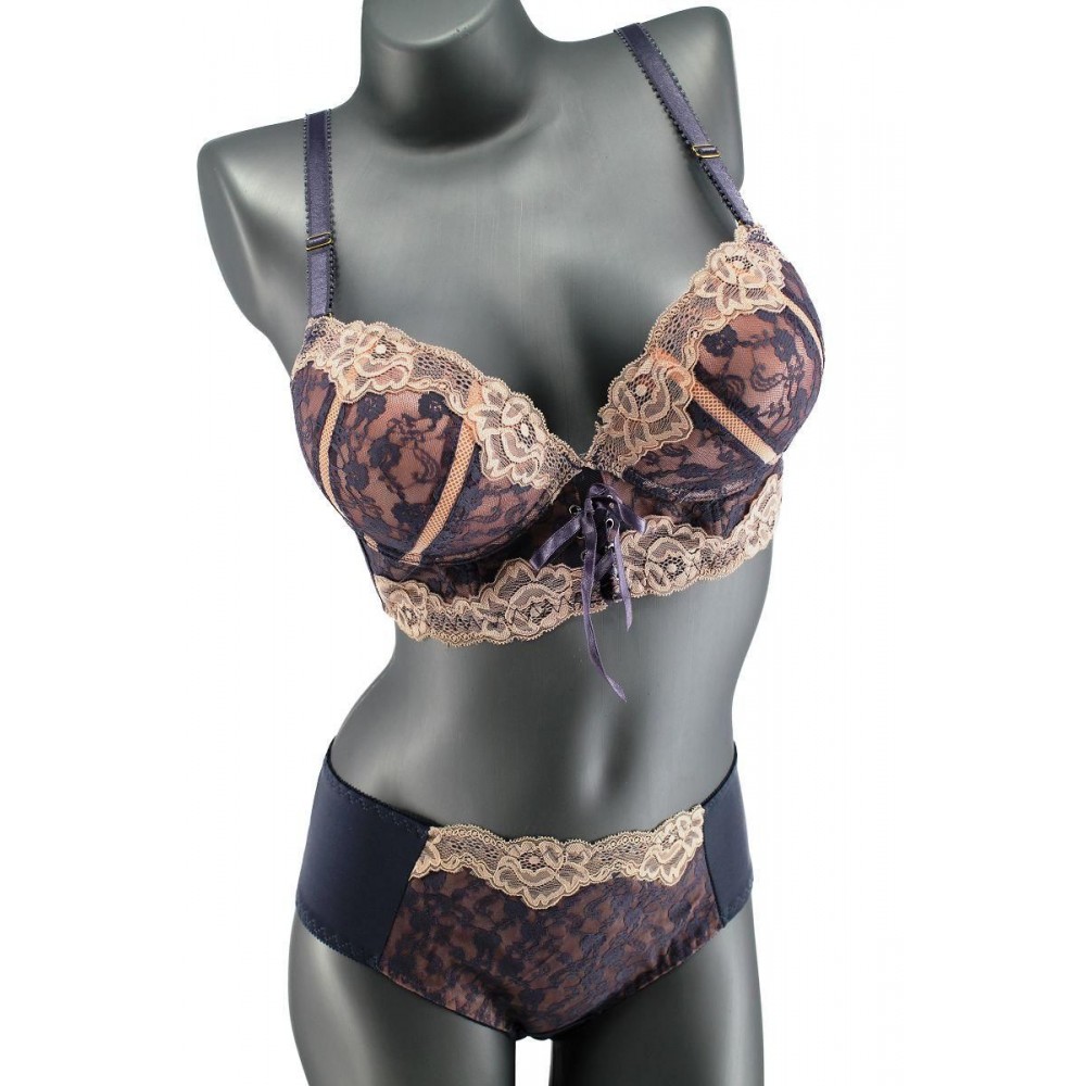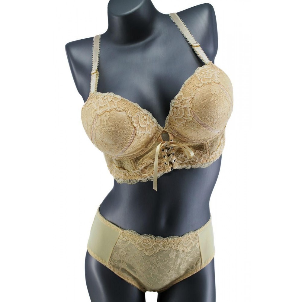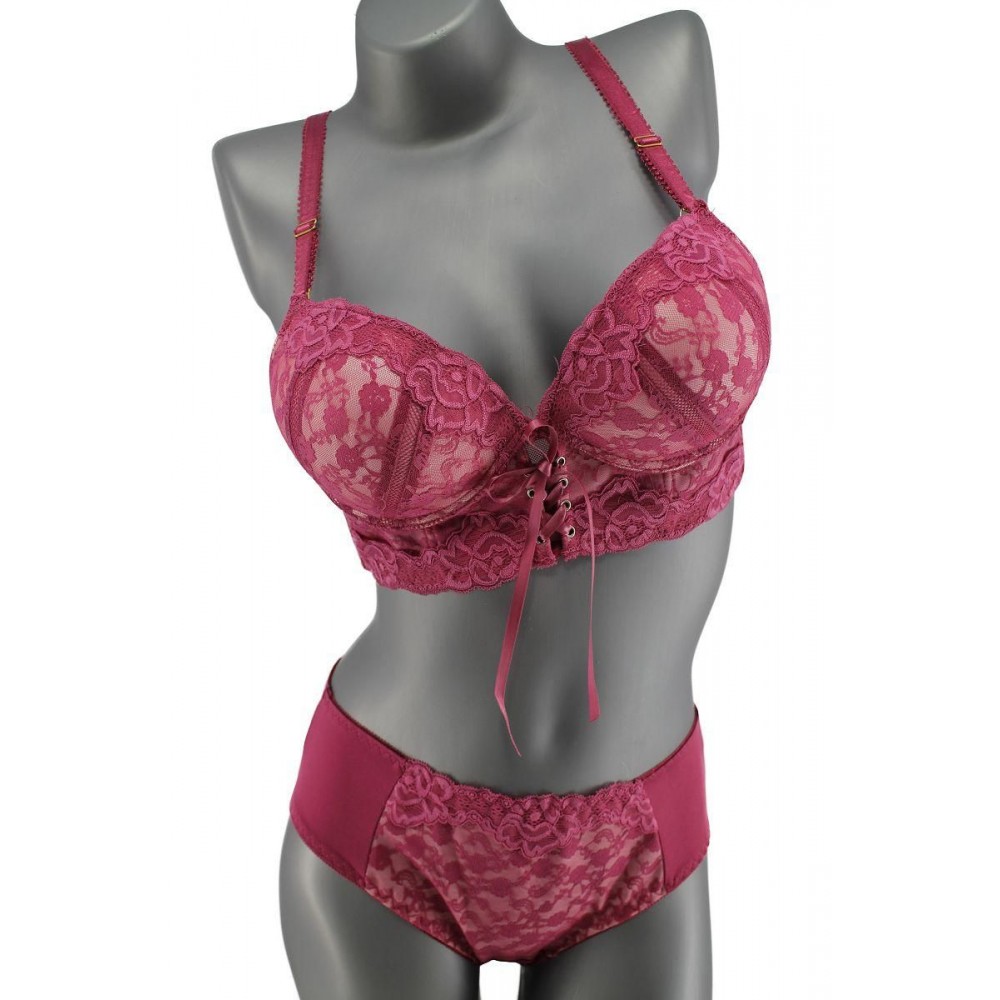 Описание: Ажурный бюст на пушапе. Бретель – съемная, спина - гладкая. В комплекте трусики-бедровка больших размеров(46; 48; 50)