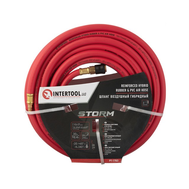 Прочное армирование и толстые стенки шланга обеспечивает работу шланга с давлением воздуха до 20 атм.