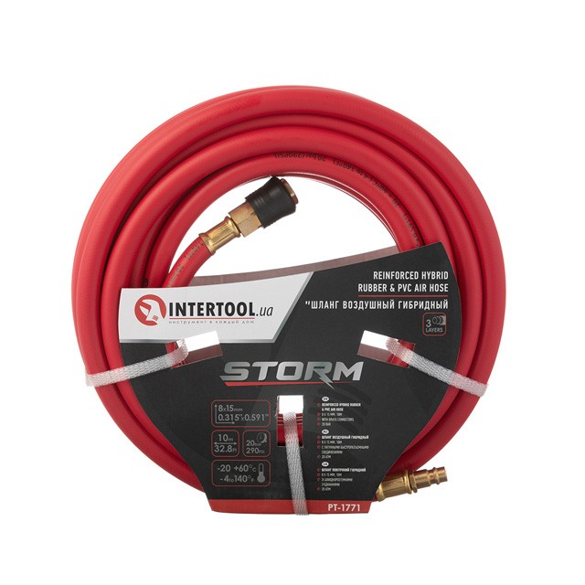 Прочное армирование и толстые стенки шланга обеспечивает работу шланга с давлением воздуха до 20 атм.