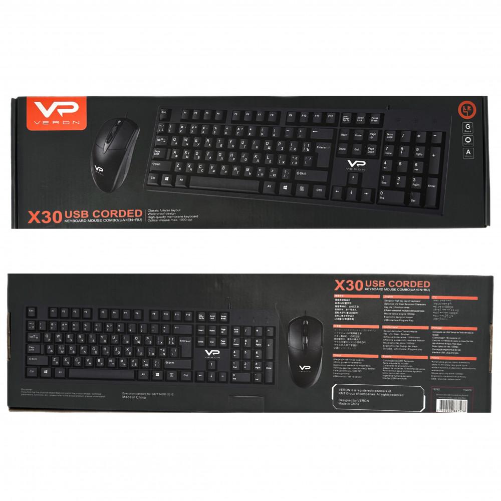 Клавиатура Veron X30 в комплекте с мышкой – компьютерная периферия, совместимая с операционными системами: Windows, Mac OS, Linus, Android. Комплект имеет стильный дизайн, идеально впишется в интерьер вашего дома или офиса. Изготовлен комплект из качественного пластика, устойчивый к ударам.