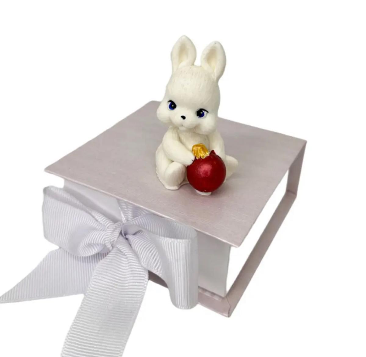 Кондитерська прикраса "Новорічне кроленя з червоною іграшко