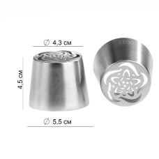 Металлическая насадка для зефира Кондитерская насадка подходит для работы с кремами: ганаш, масляный, белковый! Так же прекрасно подходит для работы с кулинарными плотными начинками, паштеты и пр. Размеры насадки: Высота 4,5 см Верх 4,3 см Низ 5,5 см Материал: металл