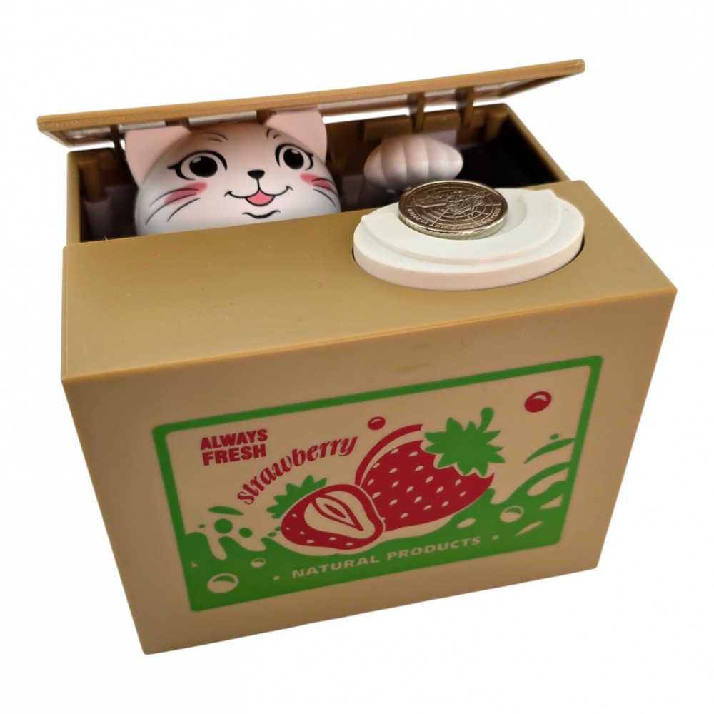 копилка, копилка кот, интерактивная копилка, автоматическая копилка, детская копилка, коробка для монет, coin box, strawberry, подарок ребёнку, копилка игрушка, копилка для монет
