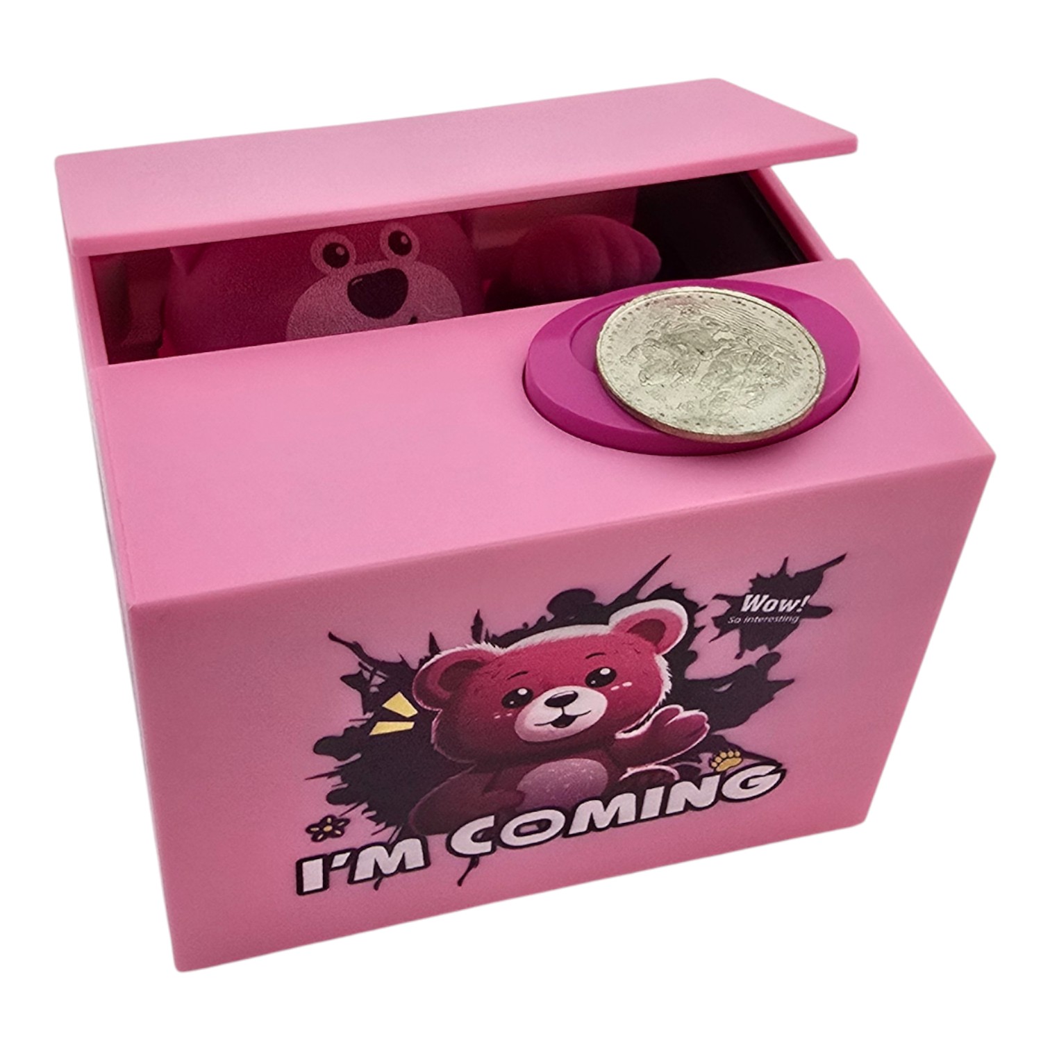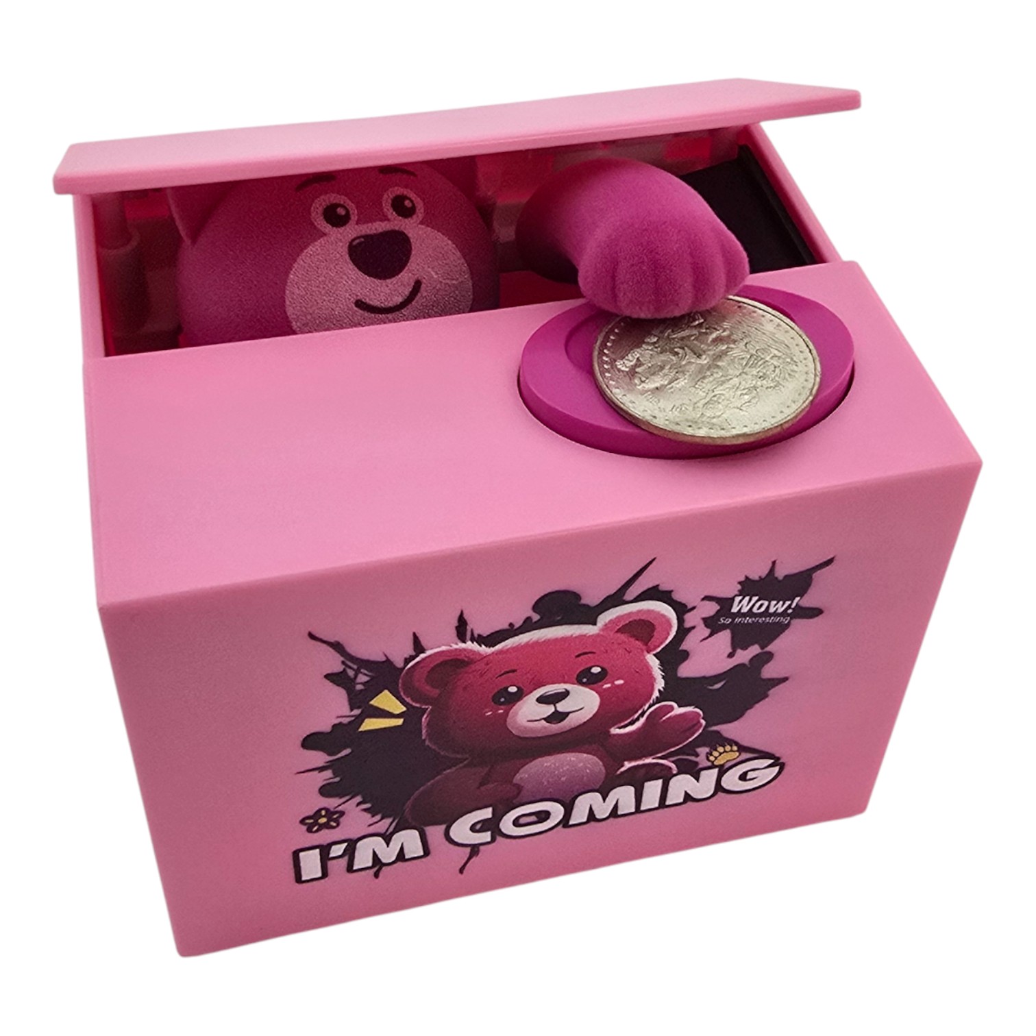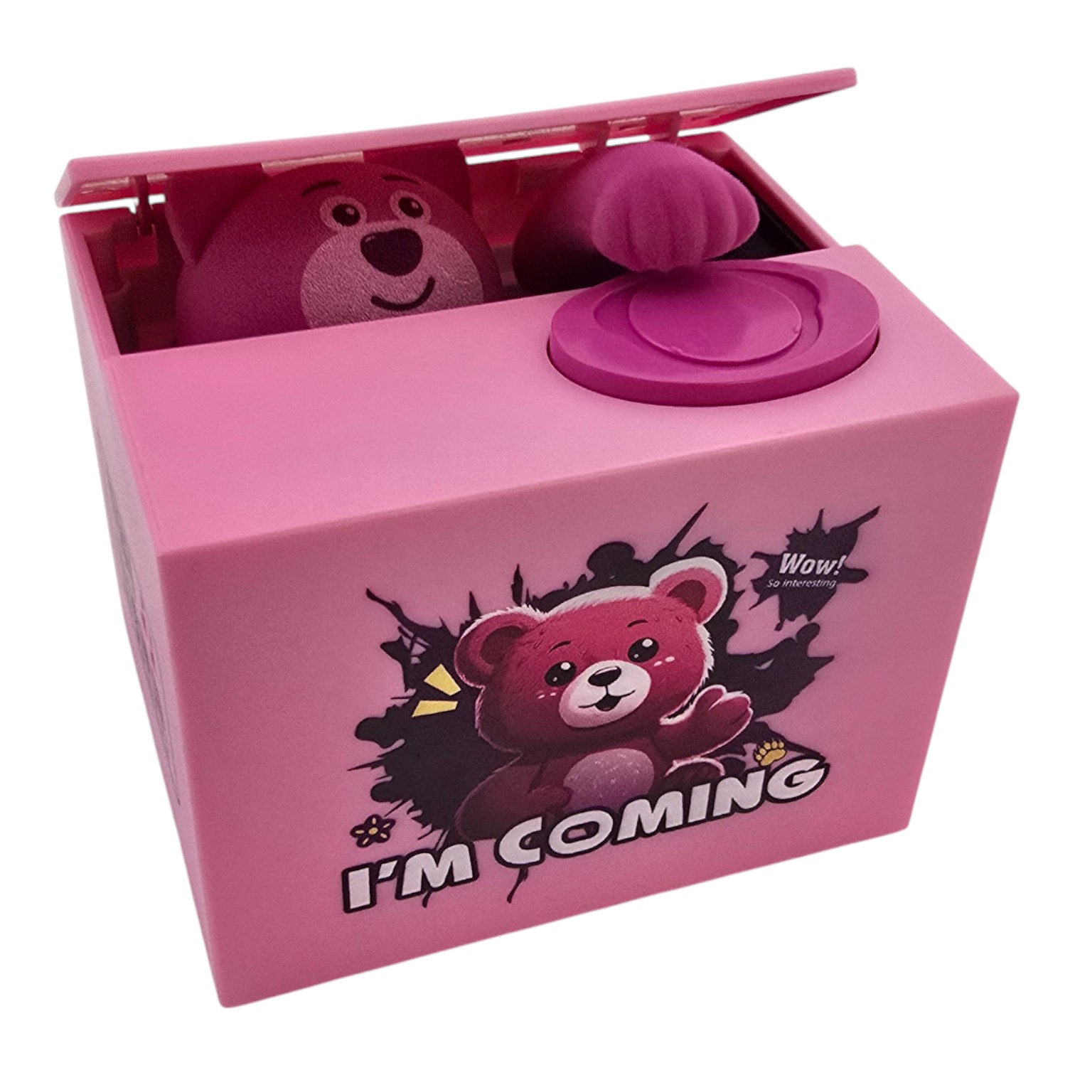 Копилка медвежонок воришка автоматическая 12 х 10 х 9 см розовая