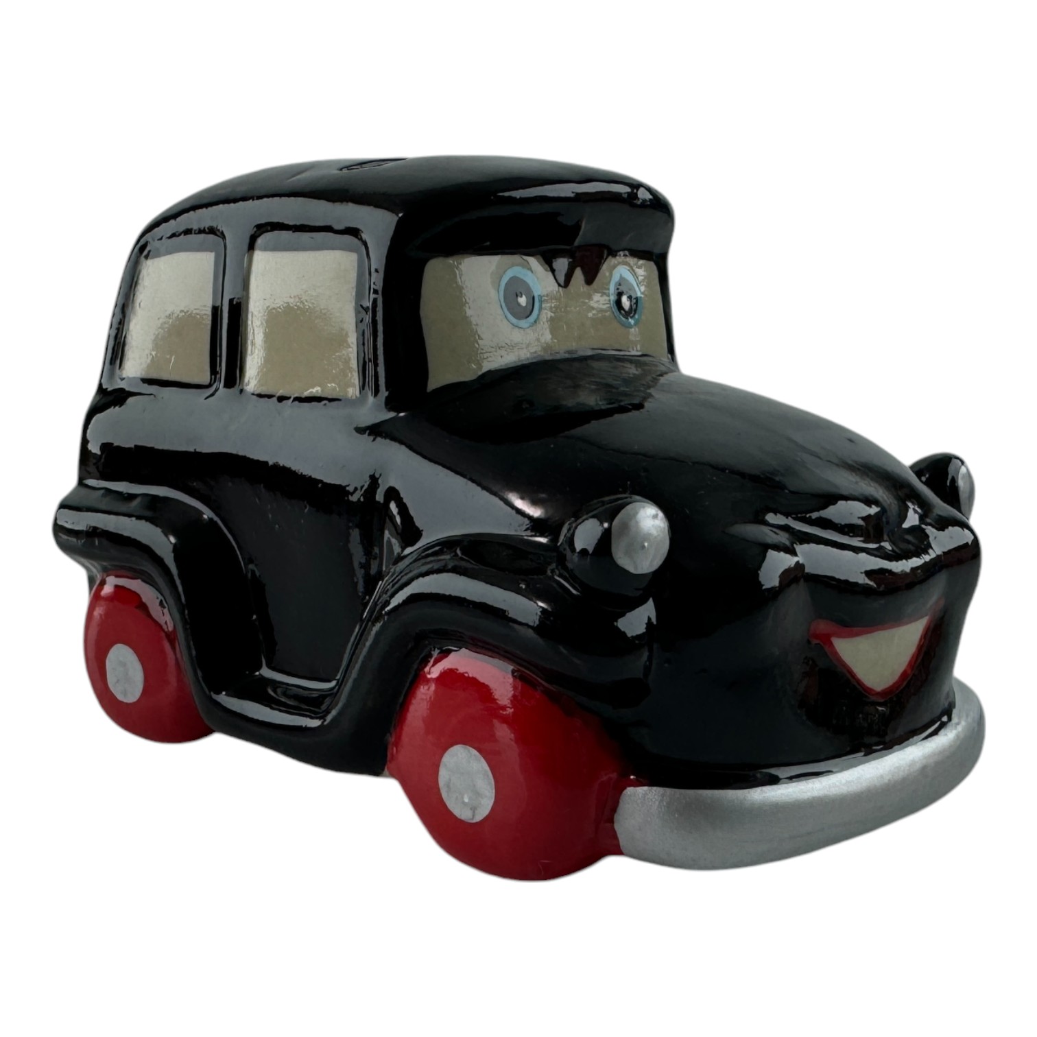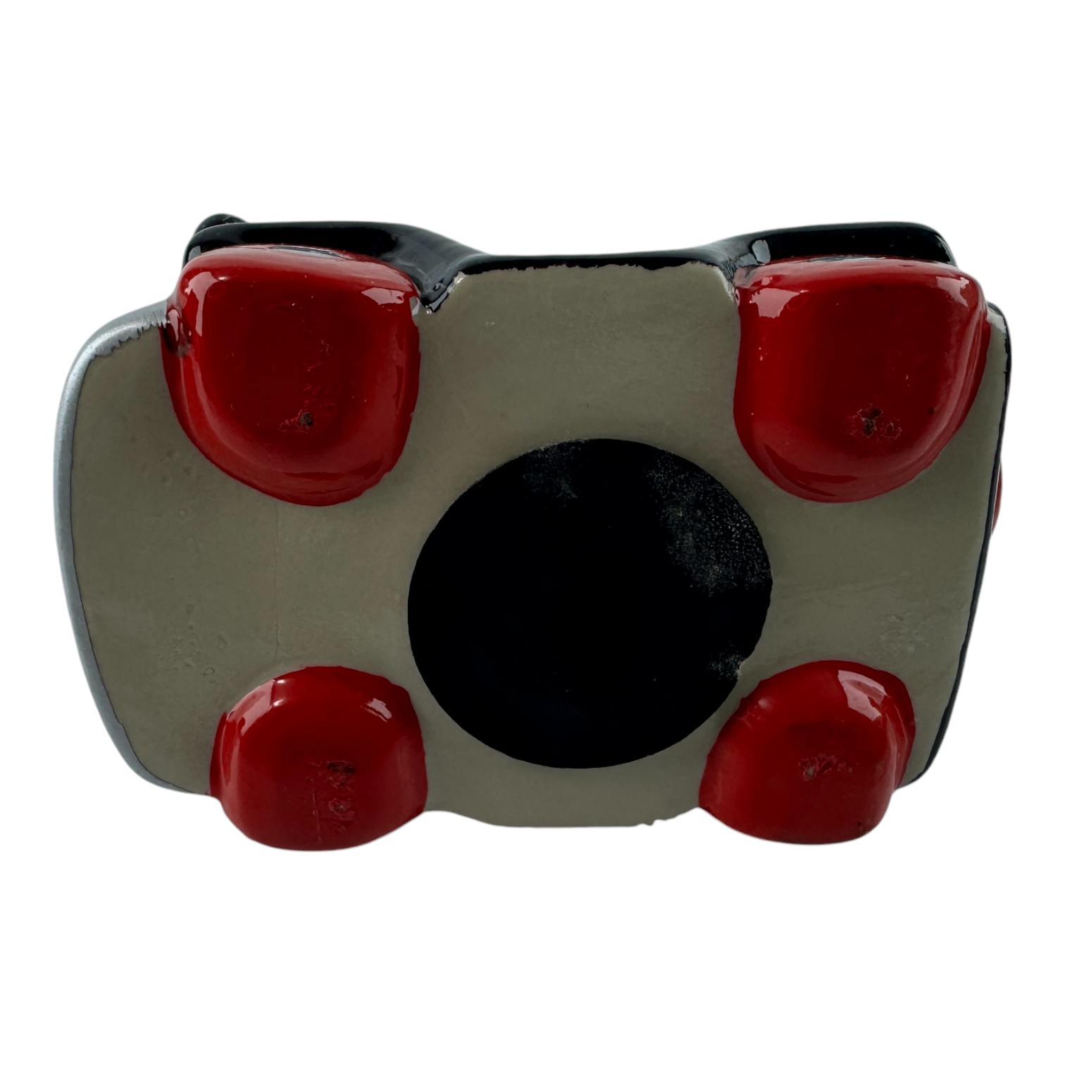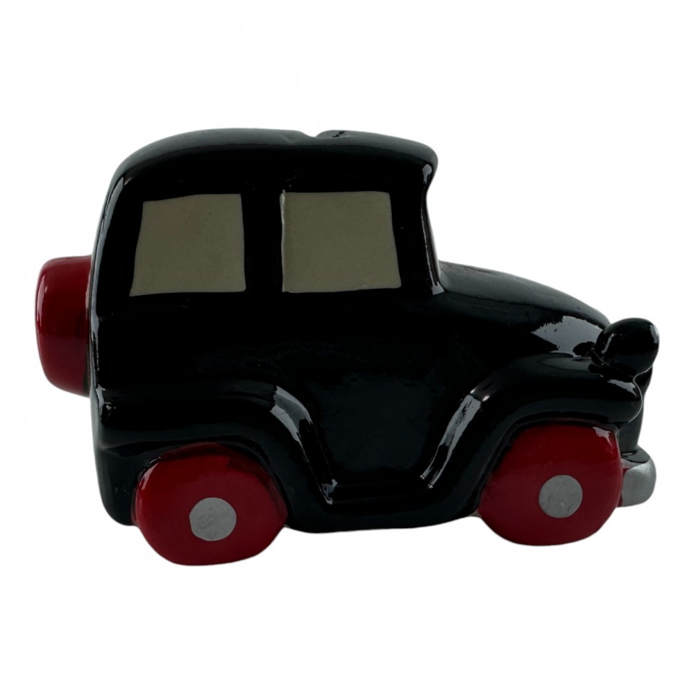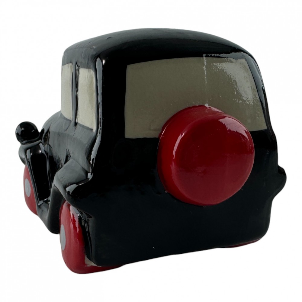 Эта очаровательная керамическая копилка выполнена в виде черного ретро-автомобиля с забавными глазами и широкой улыбкой. Прекрасный декоративный элемент и функциональный аксессуар для хранения мелочи. Изделие имеет съёмную резиновую вставку на дне, благодаря чему монетки можно легко достать, не разбивая копилку.