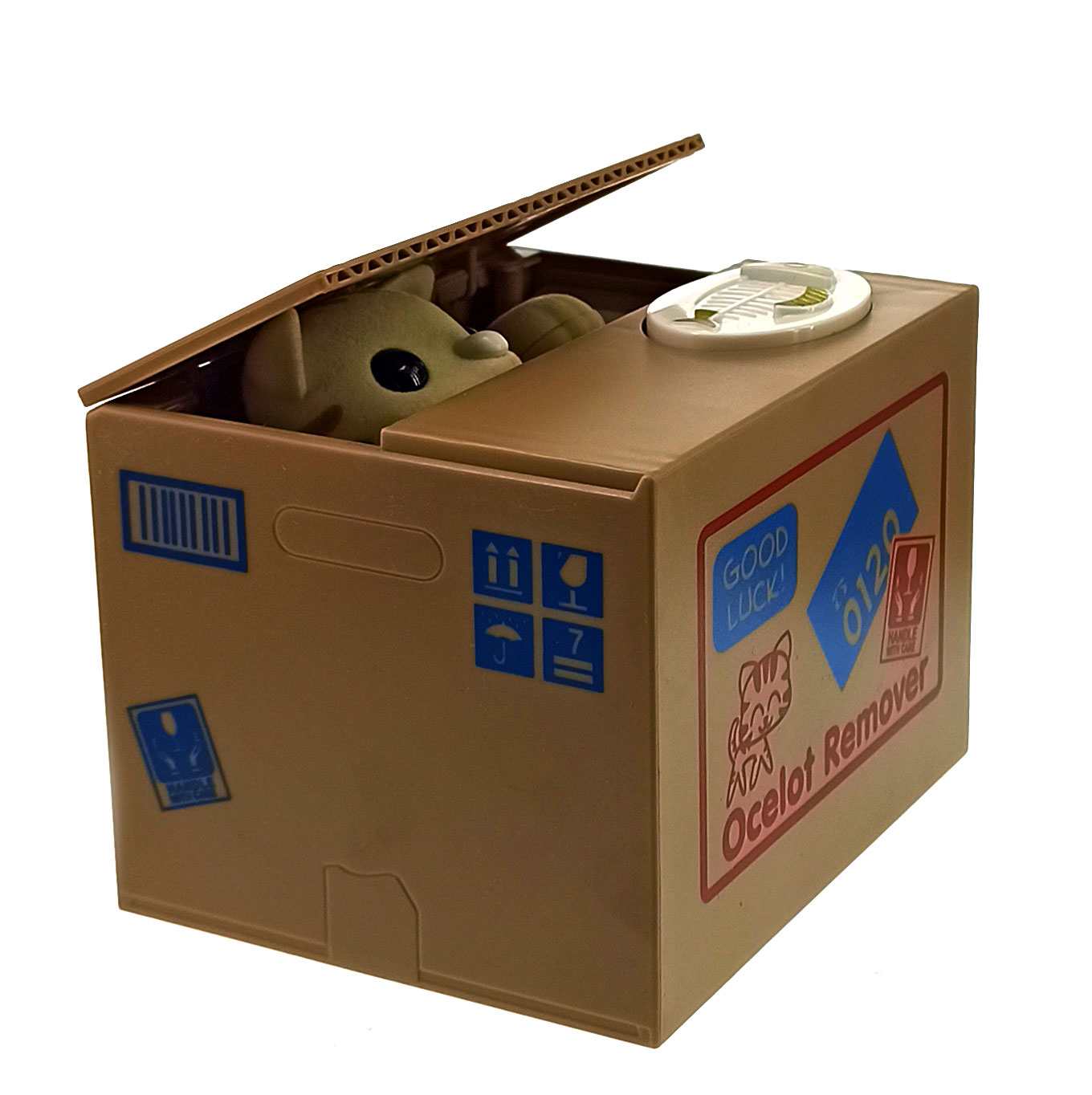 Красивая копилка – это отличный способ сохранить деньги, чтобы потом достать их и потратить на нечто желанное. Как только Вы положите на нужное место монету, как лапка кошки,сидящей внутри копилки, немедленно сцапает ее.Батарейки в комплект не входят.