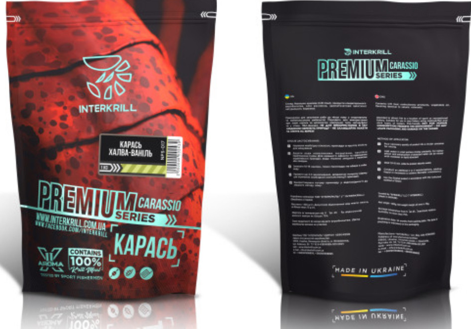 Прикормка создана на новом производственном оборудовании в Украине и представляет линейку высококачественных прикормок ™ INTERKRILL. Один из основных компонентов - это крилевая мука (Antarctic Krill Meal) от ™ INTERKRILL. Прикормка показала отличную работу по лещу и всей белой рыбе при тестировании на водоемах Украины и за рубежом. Предназначена для использования в спортивном и любительском рыболовстве. ЗИП-ПАКЕТ