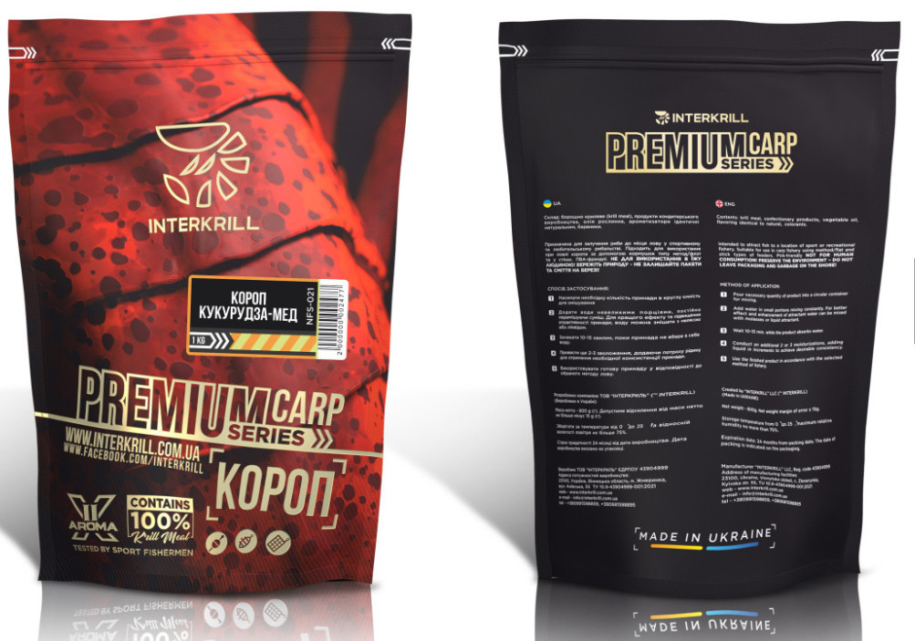 Прикормка создана на новом производственном оборудовании в Украине и представляет линейку высококачественных прикормок ™ INTERKRILL.