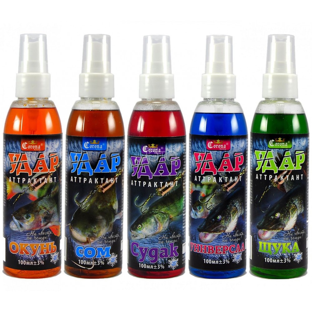 Аттрактант "Удар" - это сбалансированная смесь аминокислот, протеинов, пищевого красителя, спиртов и других ингредиентов. В состав аттрактанта "Удар" входит специфический запах (для каждого вида хищника - свой), вызывающий у рыбы чувство голода и заставляющий её активизироваться в поисках пищи. В состав аттрактанта входят ингредиенты, не позволяющие ему замерзать даже при - 20 градусах, что дает возможность использовать спрей в любое время года. Способ применения: аттрактант "Удар" применяется для ловли хищных видов рыб. Спрей равномерно наносится на натуральные наживки и искусственные приманки (живец, блесна, воблер, твистер, виброхвост и.д.)