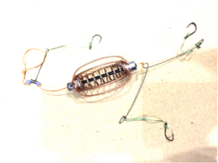 Кормушка Арбуз в сборе на 3 крючка. Используют для ловли карповых.