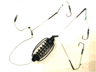 Кормушка Арбуз в сборе на 3 крючка. Используют для ловли карповых.