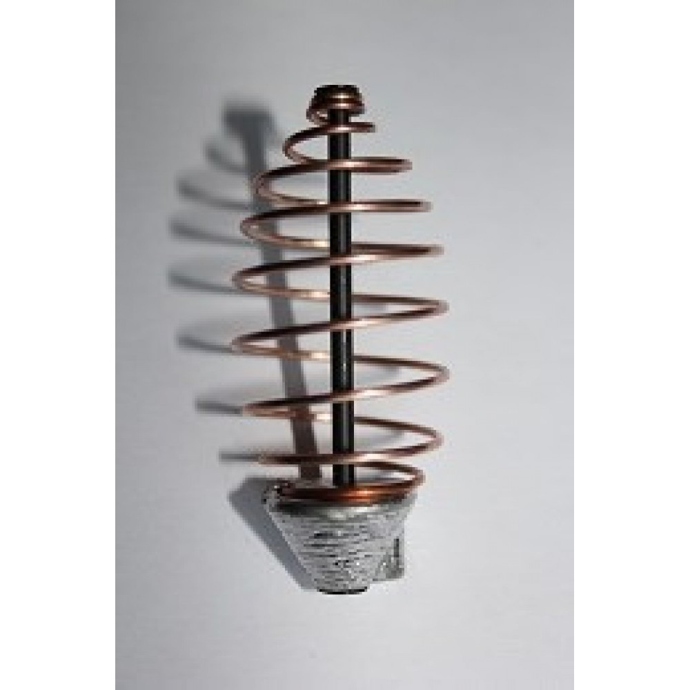 Такие кормушки представляет собой круглую пружину определённого диаметра, по центру которой закреплена полая трубка чаще всего пласмасовая на одном из концов трубки в качестве грузила закреплен чаще всего свинцовый шарик. Эта кормушка является скользящей, то есть леска проходит через трубку. У такой кормушки имеются как преимущества, так и плюсы. Например, эта кормушки обладает хорошей аэродинамикой и очень далеко летит. Но на течении плохо держит дно, так, же из за своей конструкции снасть теряет не много чувствительности, так как леска проходит через все тело кормушки. Хотя в целом такие кормушки очень популярны при ловле в стоячих озерах, водохранилищах, да и вообще в любых водоемах со стоячей водой.