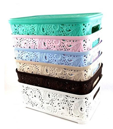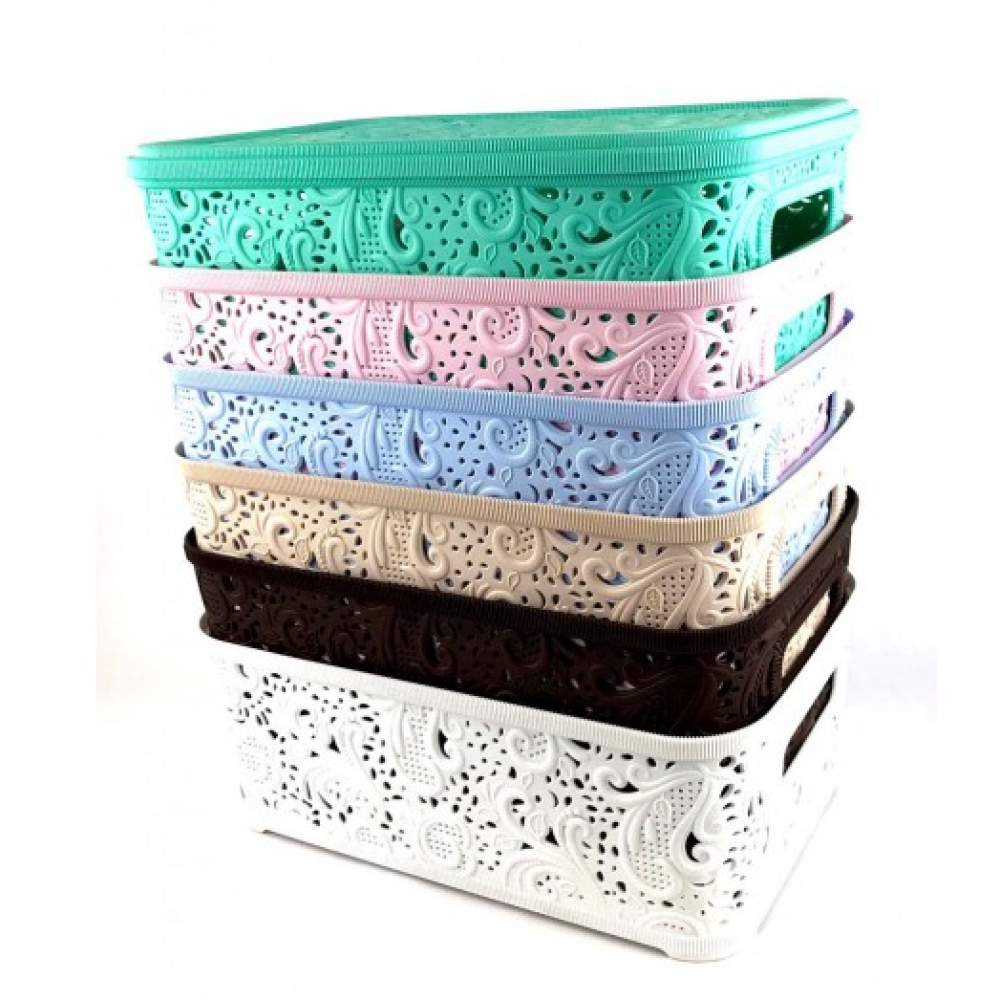 Корзина "Ажур" 4.7 л с крышкой пластиковая, 30 х 19 х 10 см, цвета в ассортименте