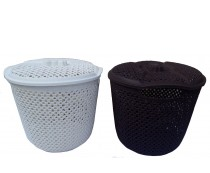 Корзина пластиковая с крышкой используется для хранения несыпучих продуктов, белья, предметов быта, канцелярских товаров, игрушек. Форма: круглая. Размеры: 39*40*34см.