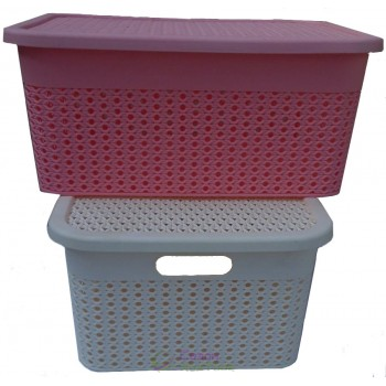 Корзина пластиковая с крышкой используется для хранения несыпучих продуктов, предметов быта, канцелярских товаров, игрушек. Форма: прямоугольная. Размеры: 39*29*16см.