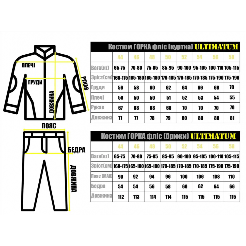 Костюм Горка на флисе состоит из куртки прямого покроя и брюк, утепленные флисом. Благодаря такой подкладке холодный ветер не попадает внутрь под одежду и зимой на улице будет ощущаться достаточно тепло.