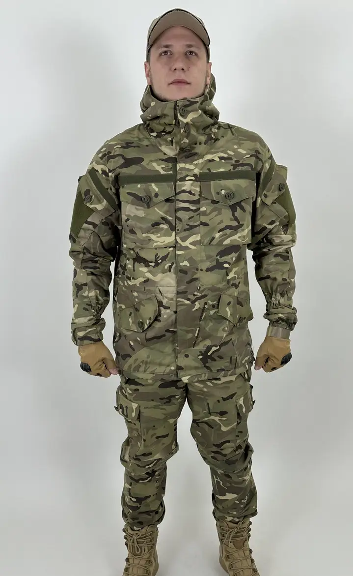 Костюм «Горка Стандарт» можно одевать как защитную экипировку поверх полевой формы. Состоит из просторной модели куртки с капюшоном и брюк с подтяжками. Оба изделия наделены множеством карманов, а также вшитыми сборками-резинками на манжетах рукавов и штанинах, которые защищают от попадания мелких частиц и уменьшают парусность одежды.